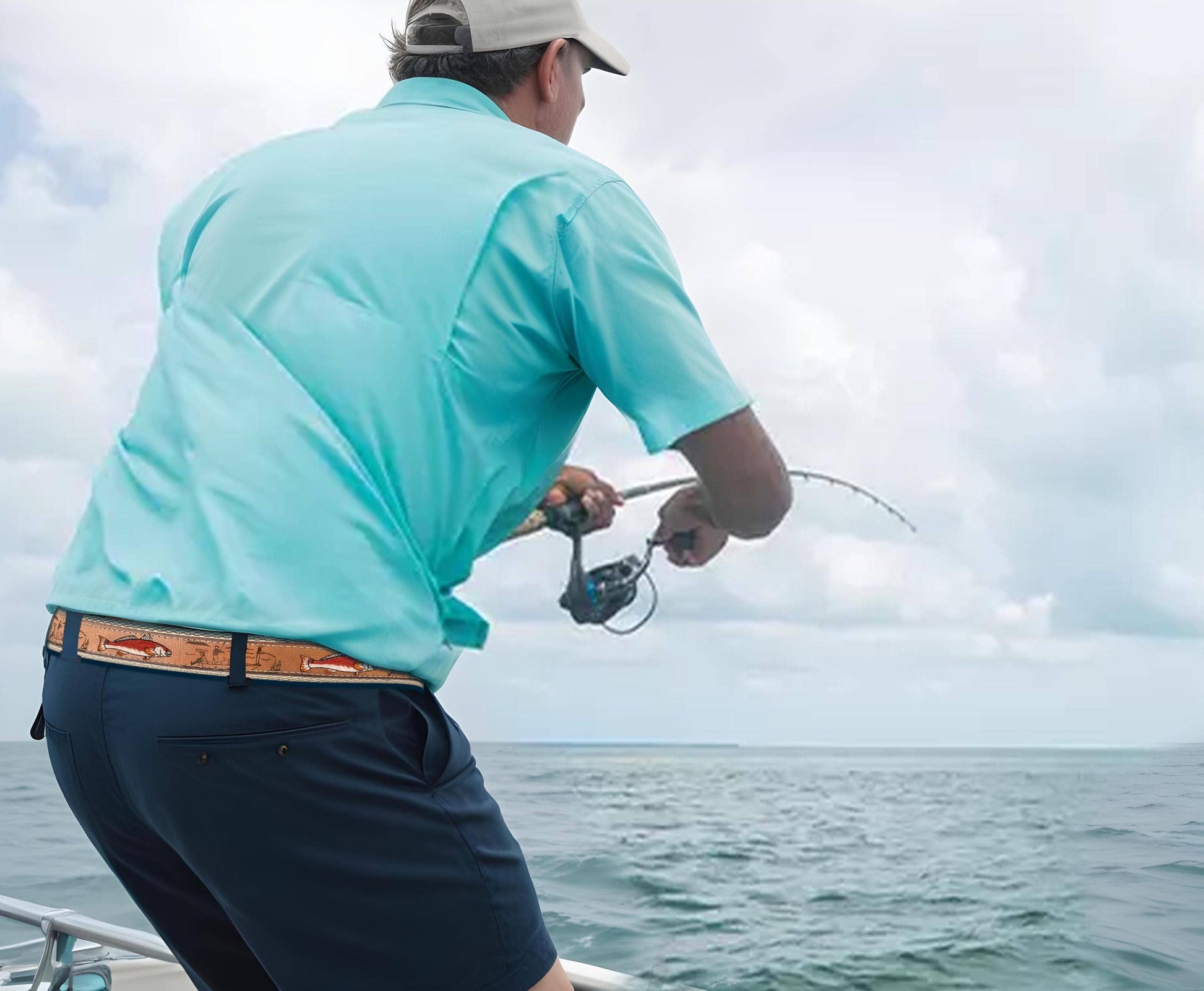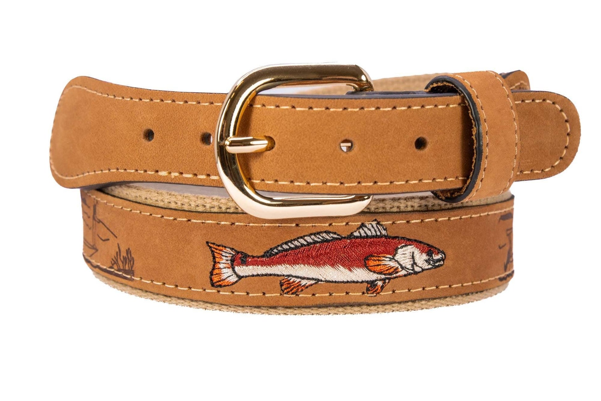 Prior to purchase, please view the next image for proper belt sizing. Show your passion with an original Zep-Pro leather embroidered belt featuring a Redfish design. This accessory is popular among sports fishing and boating enthusiasts. It is a stylish and unique way to complement a pair of casual slacks, jeans or khakis. This Zep-Pro belt is constructed of tan full grain nubuck leather, cotton web backing and solid brass buckle. The embroidered Redfish and embossed Sports Boat are repeated throughout the belt. This belt design provides a casual look, while the colorful embroidery brings the fish to life. This belt is a classic gift for sports fishing and boating past time enthusiasts. Whether it’s for graduation, birthday, or other special occasion, this belt will be appreciated for years to come. It’s also a great way to introduce someone to a new past time. A Zep-Pro belt is a must-have accessory for any outdoor lifestyle sports fan. Sizing: Please view one of the images for proper belt sizing.